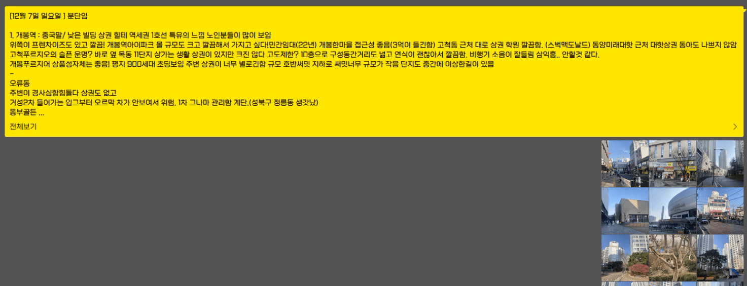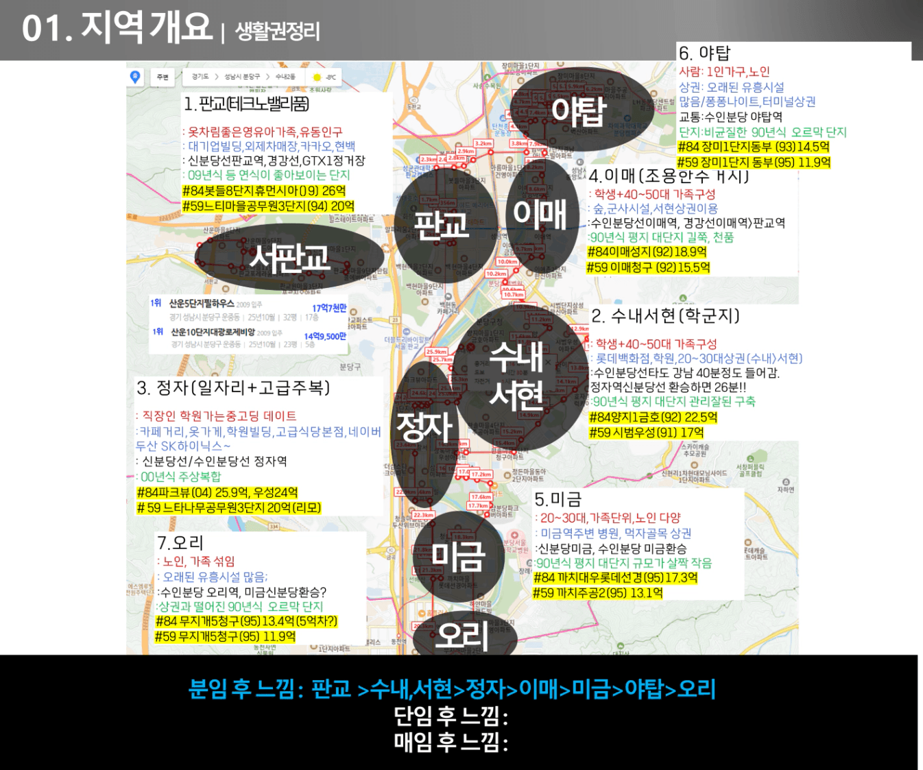 • 예: "90년대 구축이지만 1기 신도시 특유의 깔끔함이 느껴짐.",