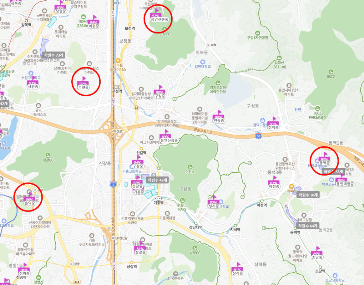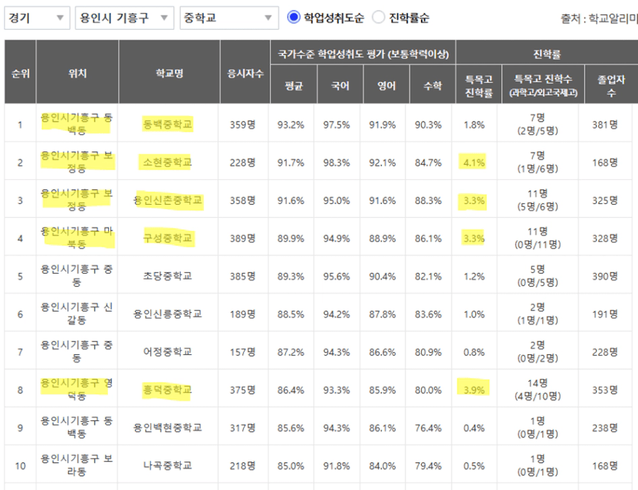 당연히 분당이나 수지구 학군에 미치지는 못하지만,