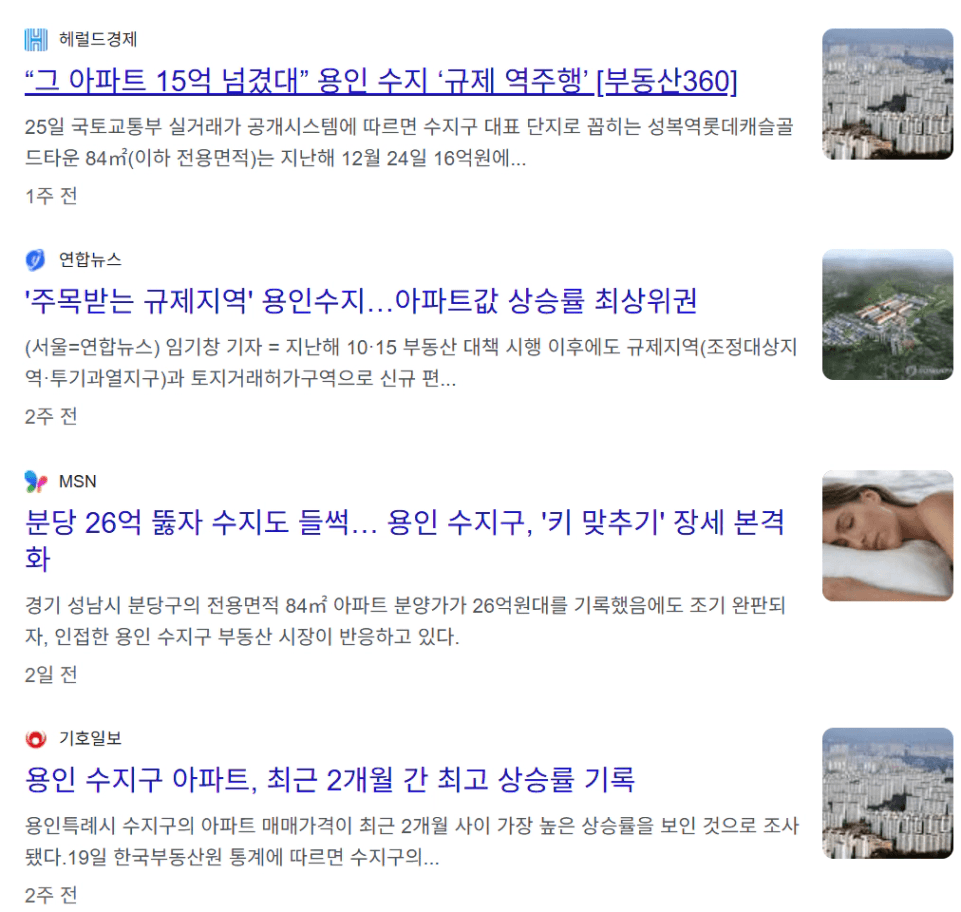 최근 수지, 동탄의 아파트 가격이 엄청나게 상승했던 것 아시나요?