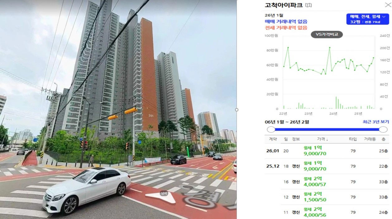 • 아실(ASIL): 전세/월세 거래 위주이며 주변 시세보다 확연히 저렴함.