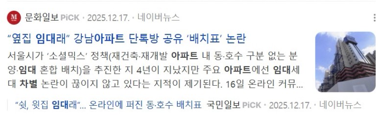 뉴스에서도 '소셜믹스 차별'에 대해 부정적으로 다루지만,