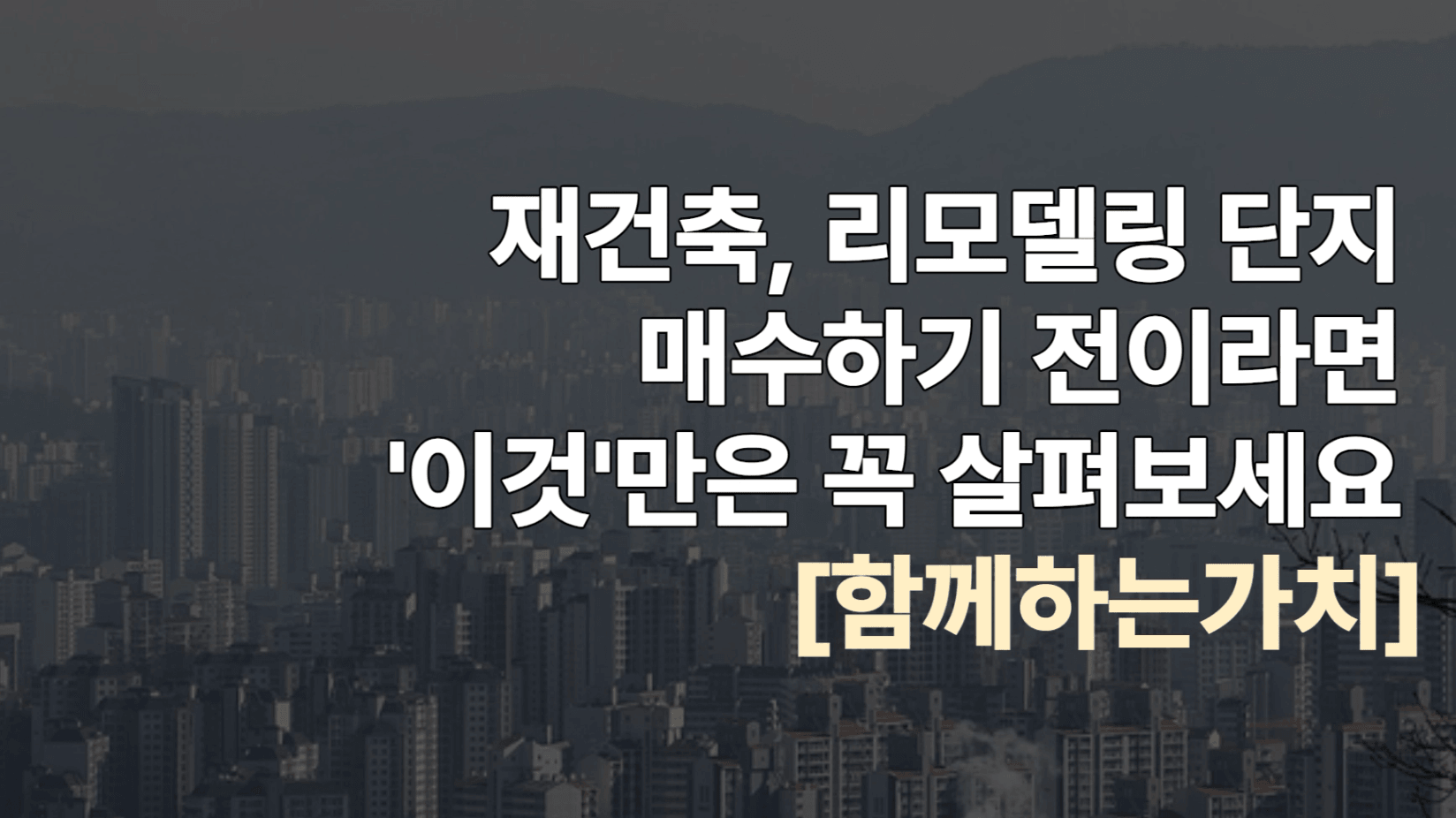재건축, 리모델링 단지 매수하기 전 '이것'만은 꼭 살펴보세요 [함께하는가치]