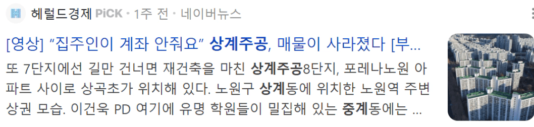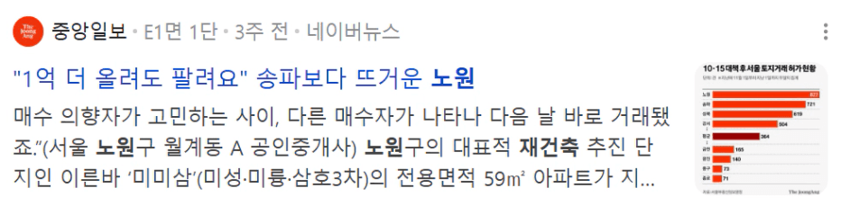 노원을 가보신분들은 아시겠지만 노원은 역세권의 아파트들이 대부분 구축아파트이고