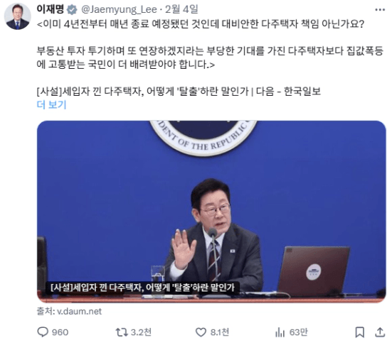 출처 : 이재명 대통령 X(트위터)