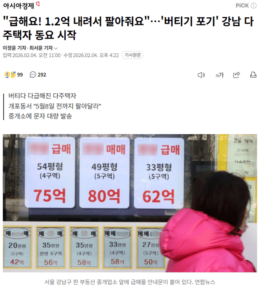 "급해요! 1.2억 내려서 팔아줘요"…'버티기 포기' 강남 다주택자 동요 시작