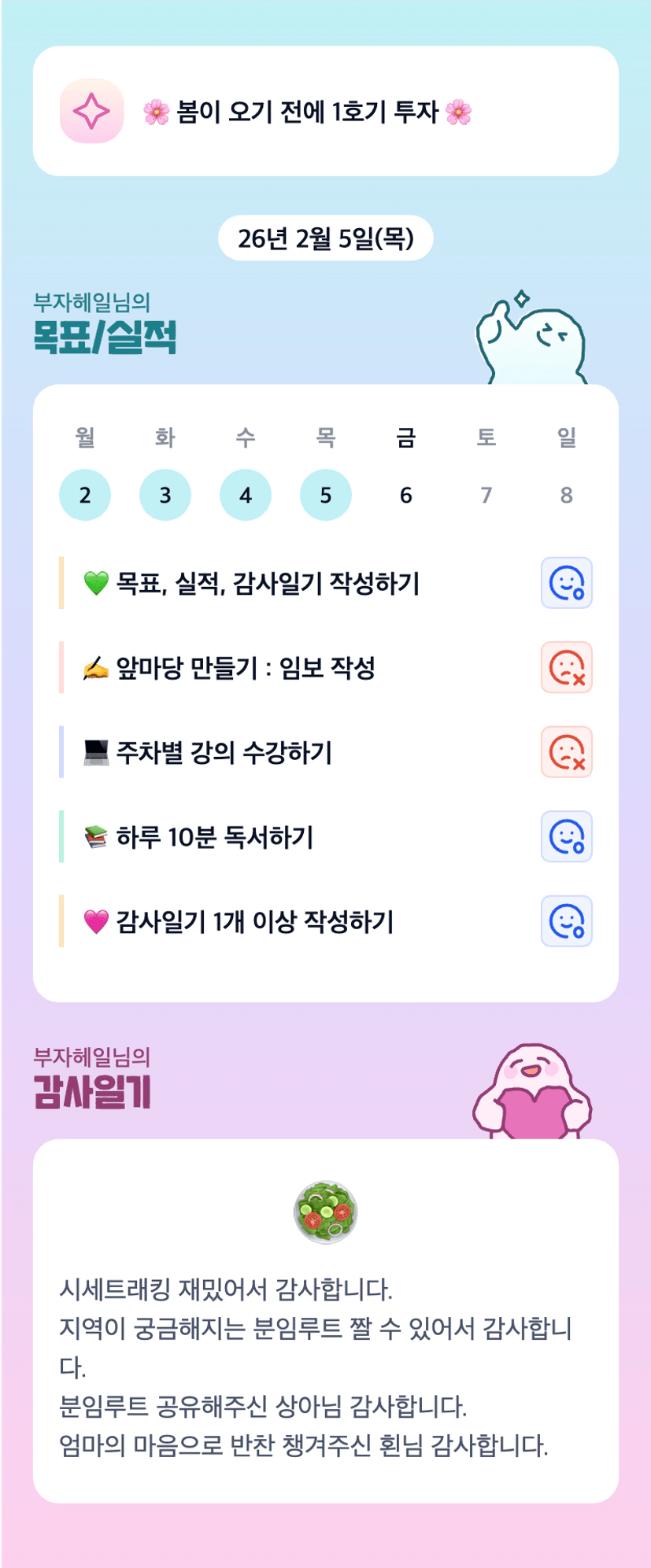 헤일님 목실감 매일 올라온거 맞아요!!!? 너무 오랜만인데!! 암튼! 시세트래킹 재미붙힌 헤일님 완죤 응원해요! 근데 난 언제하지..;