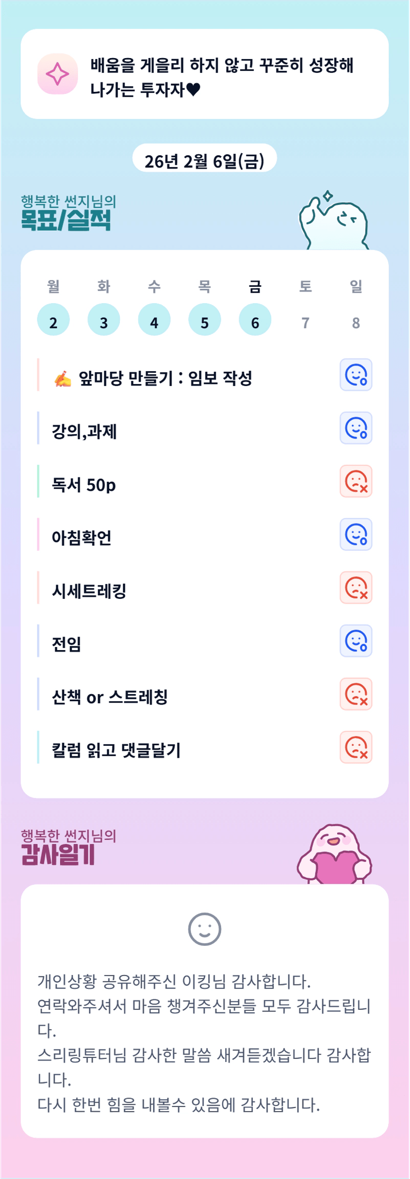 울 유쾌상쾌 상큼발랄 썬지님 목실감 왜이렇게 근엄하죠?! ㅋㅋㅋㅋㅋㅋ 썬지 운영진 조장님 이번주임장 & 튜데 빠이팅입니다 ♡♡♡