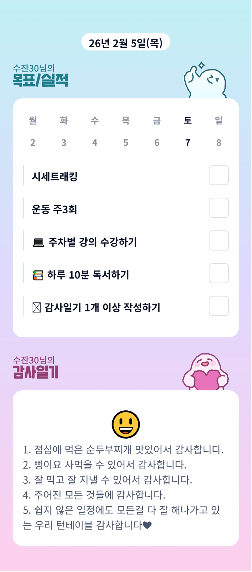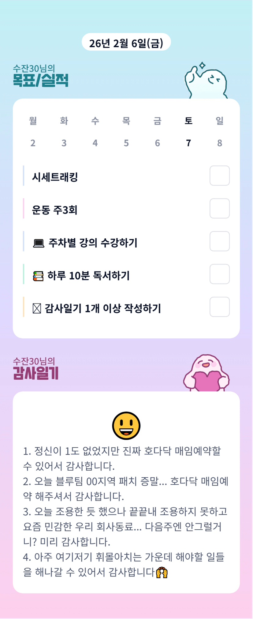 잔부님 힘들지만 매임에 같이 해주셔서 감사합니다 잔부님 화이팅