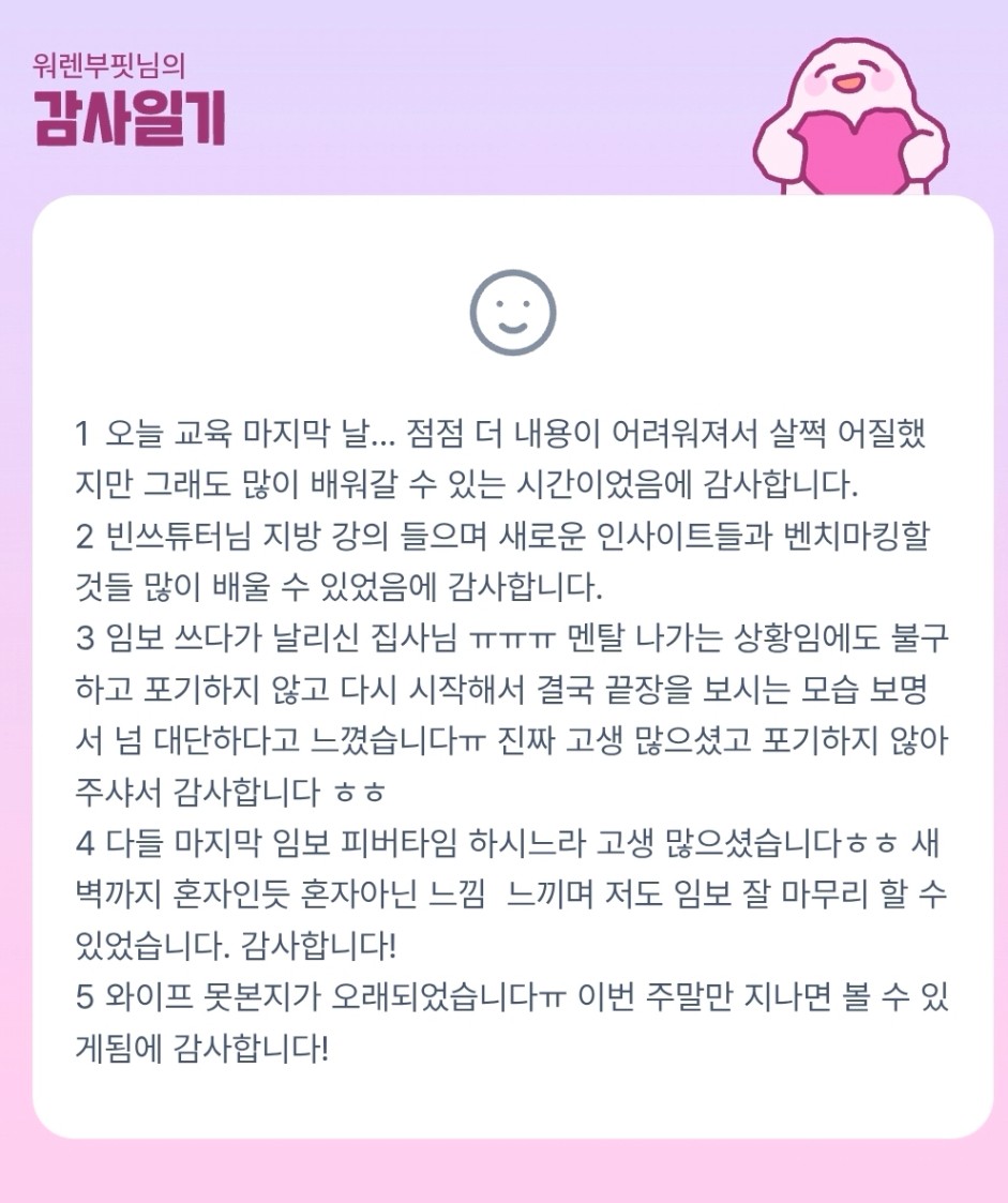 부핏님 주말에 꼭 아내분과 소중한 시간 보내시길 응원합니다!!🥰🥰