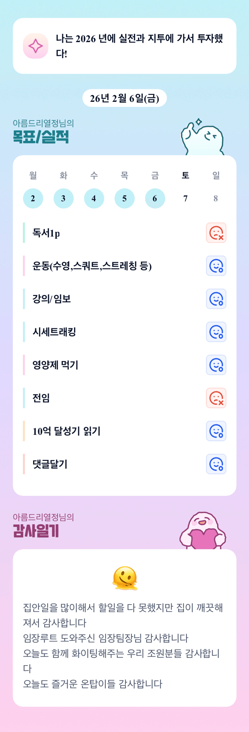 오늘도 즐거운 온탑이들 ㅎㅎㅎ저도 온탑이들 덕분에 웃으며 하루 마무리합니당~~🤣 아름님 오늘 임장가시죠??안전임장하세요💛💛