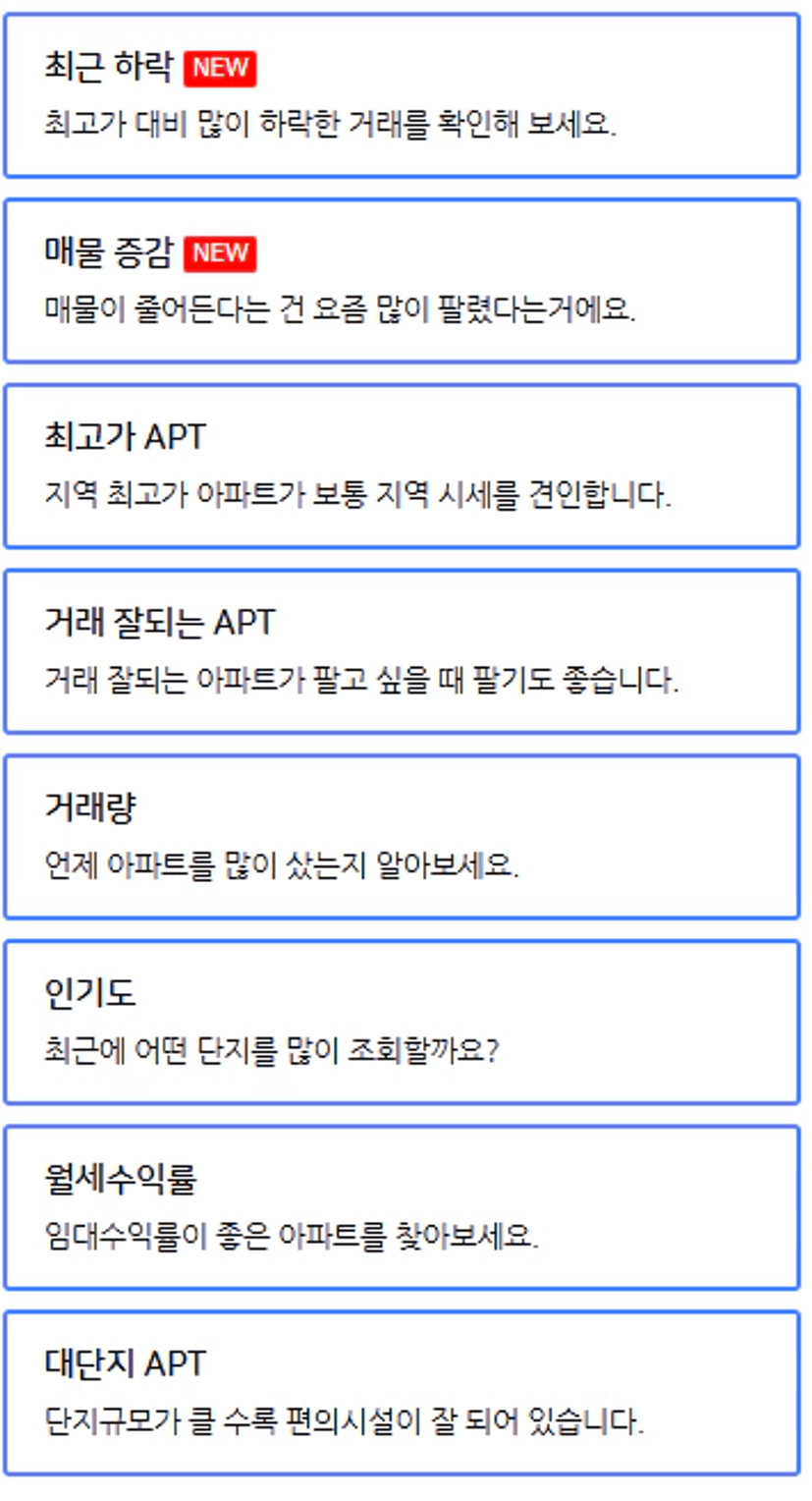 이 자료들을 참고해서 해당 구/동에 있는  선호하는 단지를 봐도 보고 있었어요.