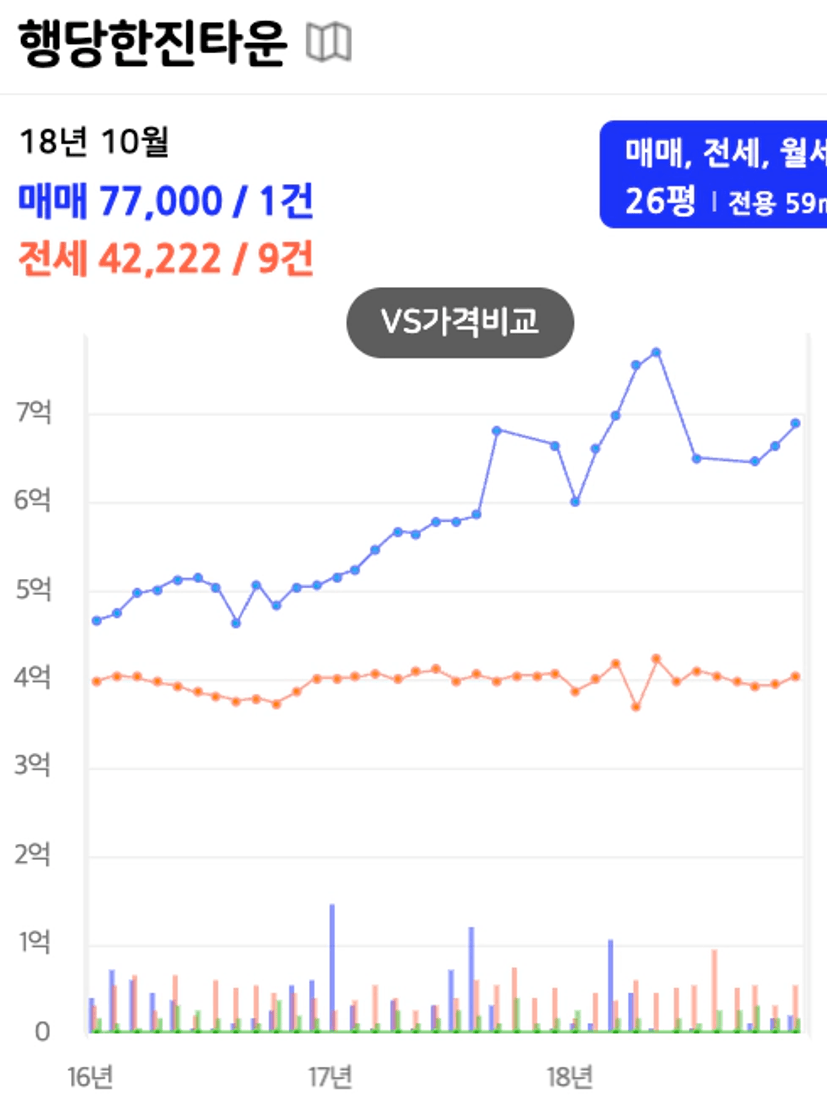 [성동구 행당한진타운- 17년 후반 7억 가까이 거래된 가격이 18년 6억까지 떨어짐]