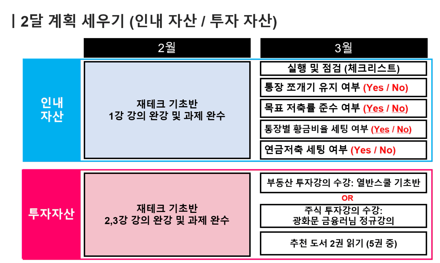 강의 완강 하기 , 재태크 도서 1권이상 읽기