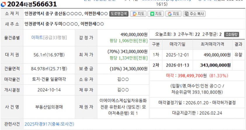 #차순위(2위 입찰자) 와는 약 10만원 차이로 낙찰에 성공