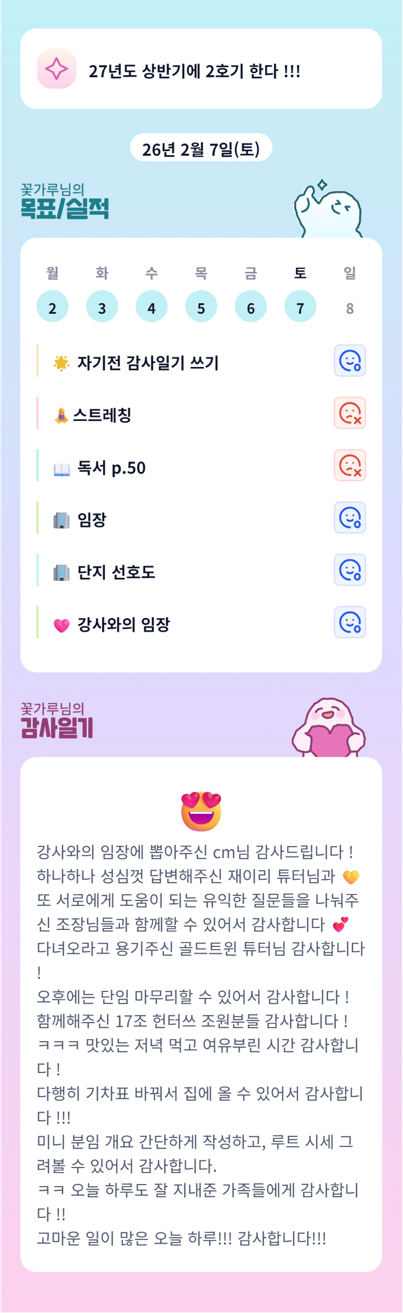 진짜 많은 일들을 해내셨네요. 고생많으셨어유~ 튜데 홧팅!