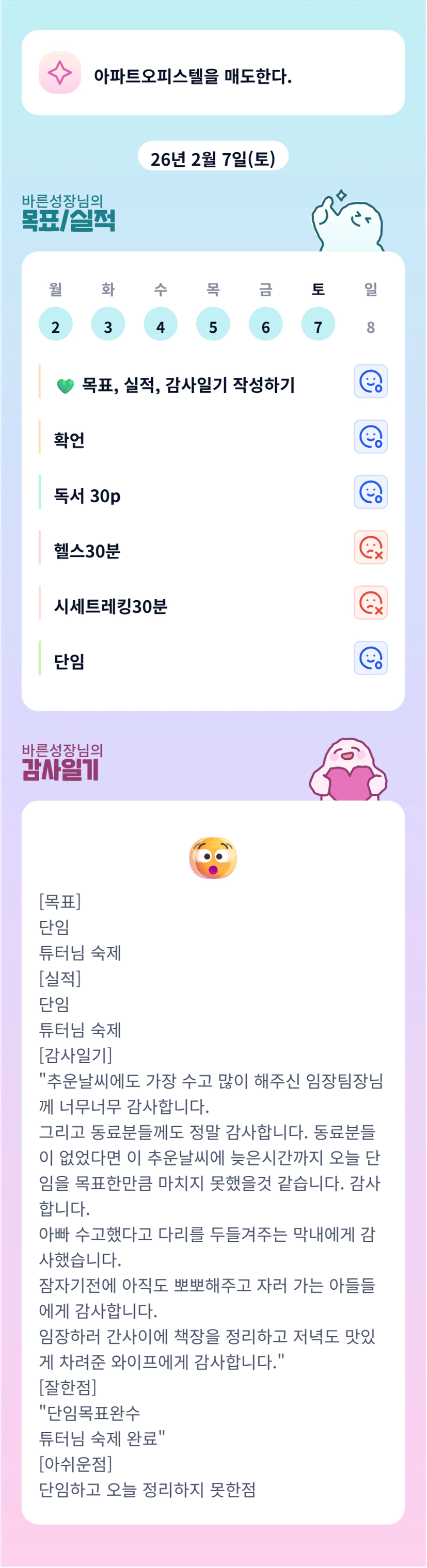 와.. 막내의 안마를 받으시고 ㅎㅎ 피로가 확 풀리셨겠습니다^^ 편안한 밤 보내시고 낼도 즐거운 튜터링데이 보내시죠^^ 낼 뵙겠습니다~~~