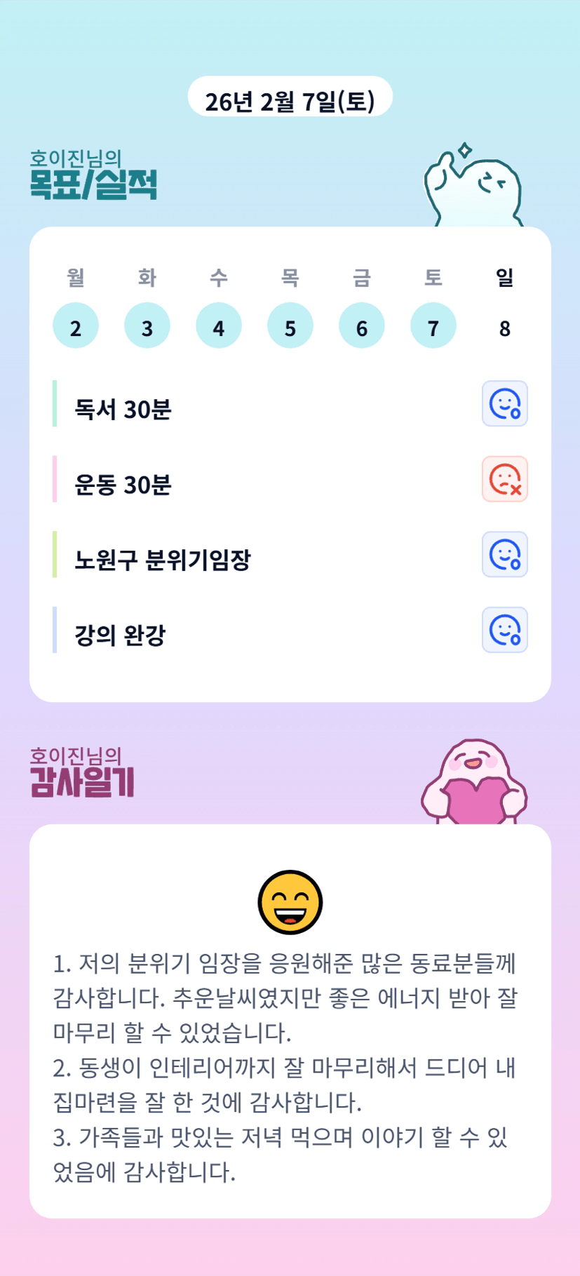 진님 ㅋㅋㅋㅋㅋ 헤헤헷 묵묵님이랑 같이 부산 단임했었다면서요!!!!! 제 이야기도 좋게해주셔서 감사합니다♡ 진님 노원도 빠이팅이에요🫶