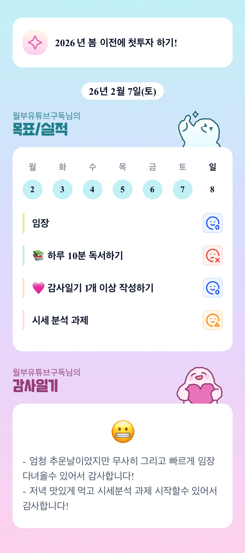 [열기 88기 내 투자는 별이 5개조 월부유튜브구독] 부자가 되기위한 행동의 첫 시작! 다 같이 화이팅해오🖐️