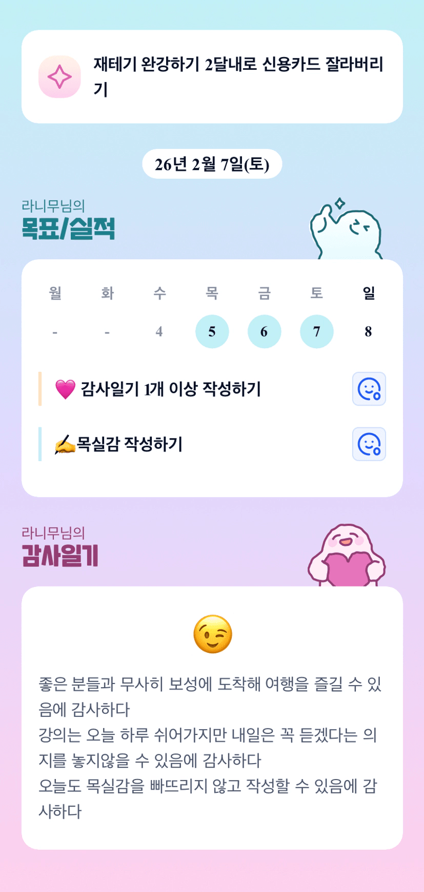 쉬어가지만 내일은 꼭 달성하기-!