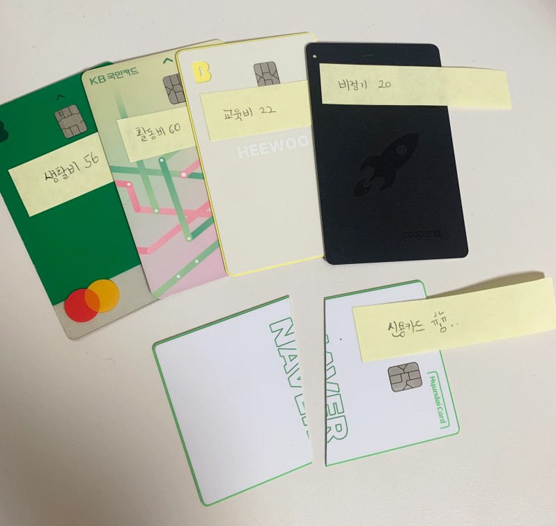 1. 용도별로 나눈 카드 인증샷 (모바일 통장쪼개기 인증샷도 좋아요!)
