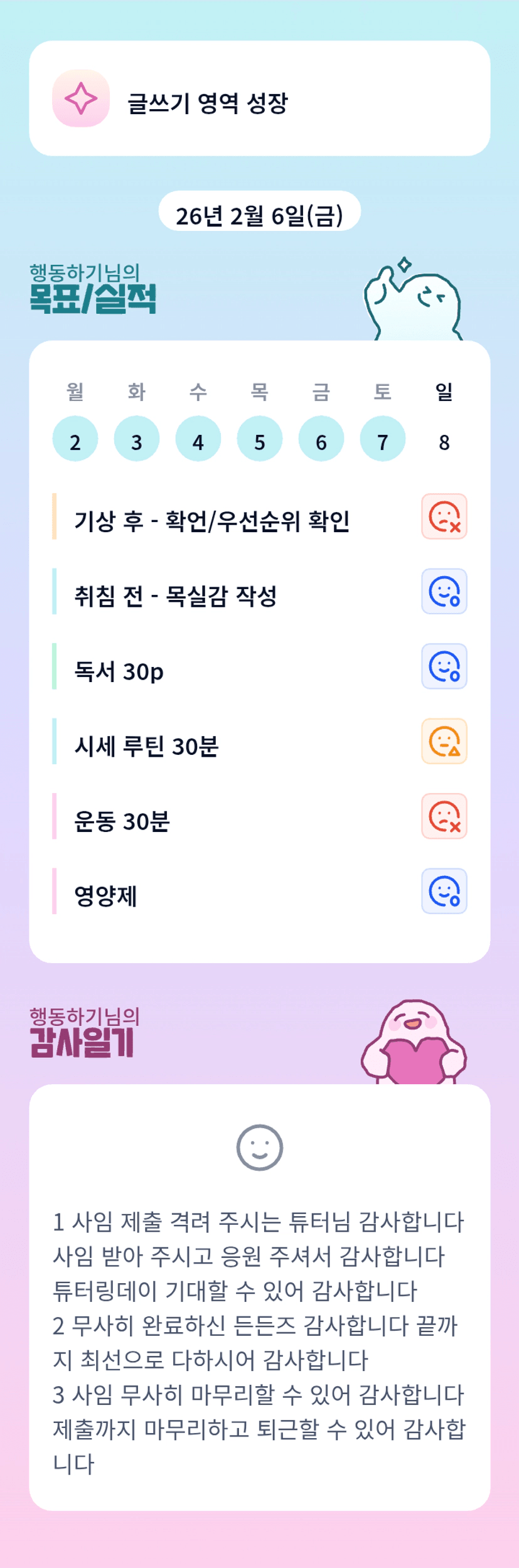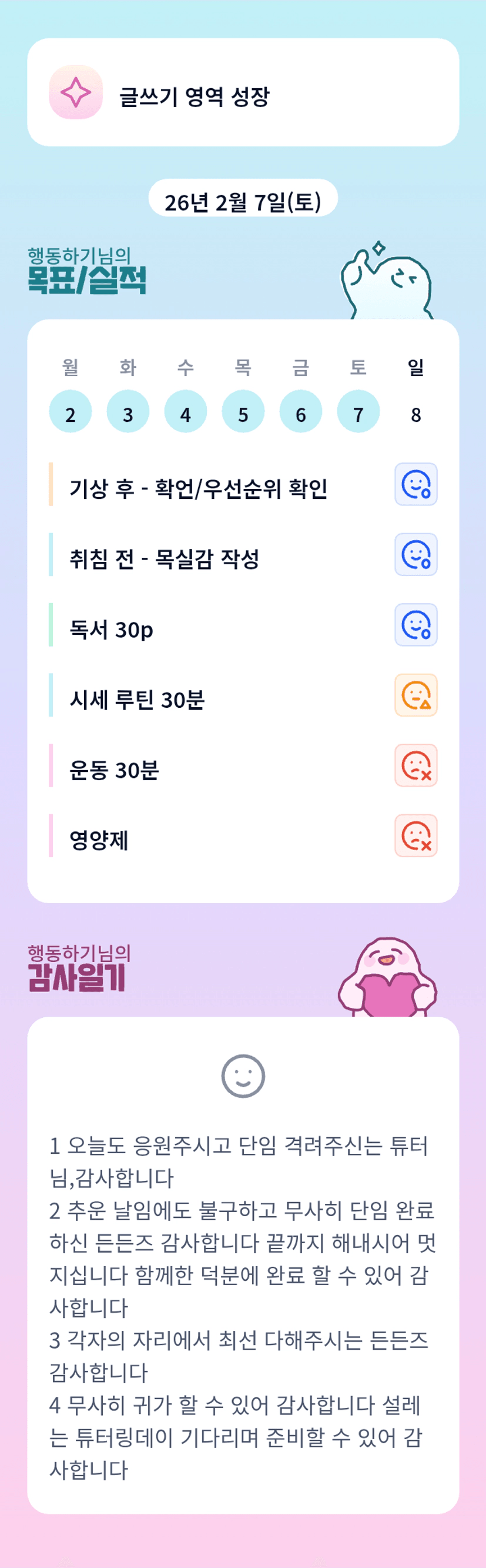 조장님 덕분에 튜터링데이도 임장 일정들도 잘 끝난거 같아요. 항상 감사합니다