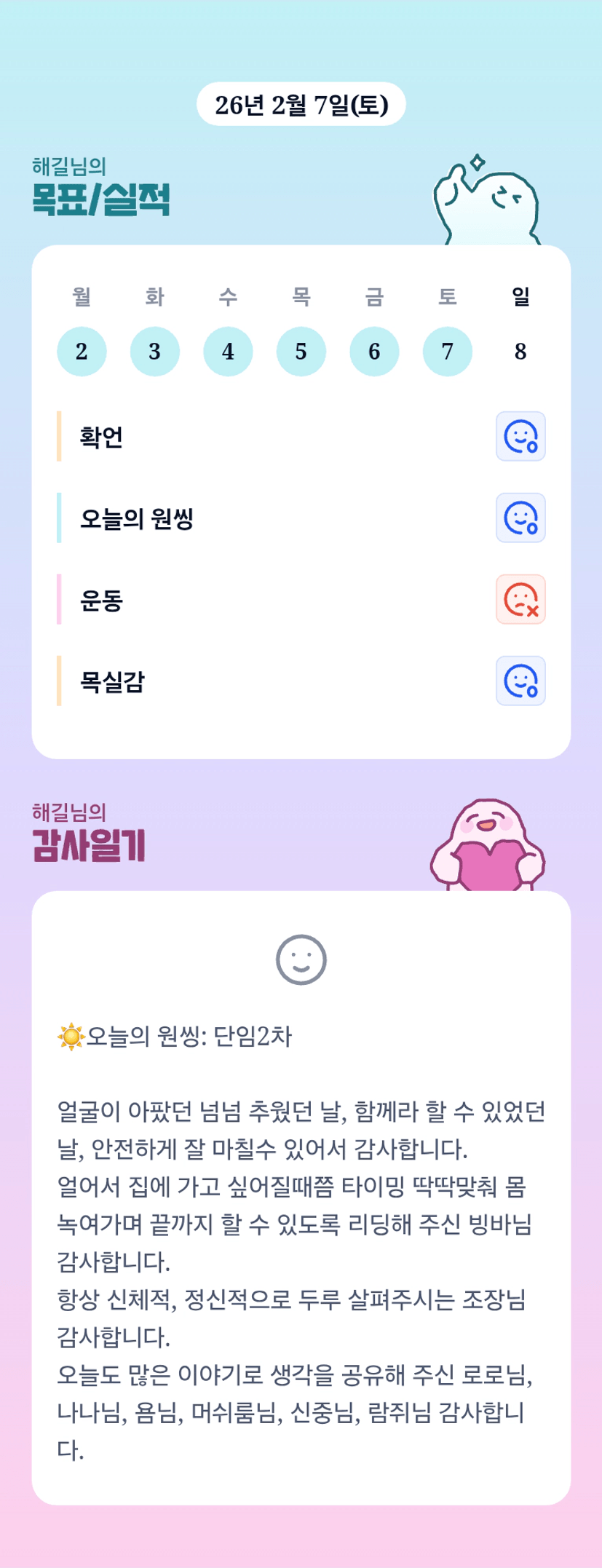 몸은 좀 괜찮으세요?!! 정말 역대급 날씨였던거같애요🥶ㅎㅎ 오늘도 잘 챙겨입고오세요!! 💓