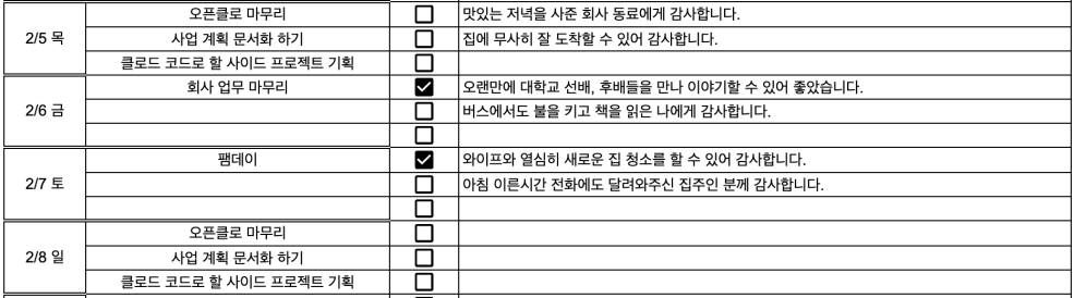 | 업무 | 업무 | 이동독서 | 투자 | 청소 | 기타 |