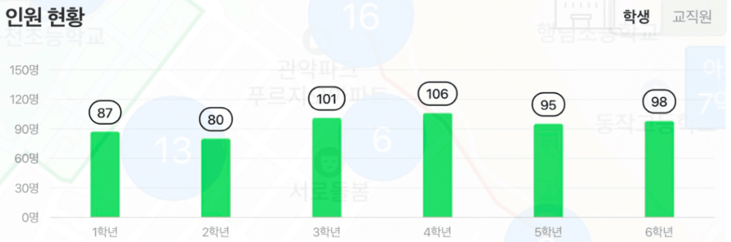 반면, 봉천초의 경우 5,6학년의 학생수가 꺾이는 것을 확인 할 수 있습니다!