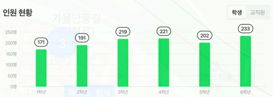 학년별 학생수도 고학년으로 갈 수록 우상향하는 것을 확인할 수 있습니다!