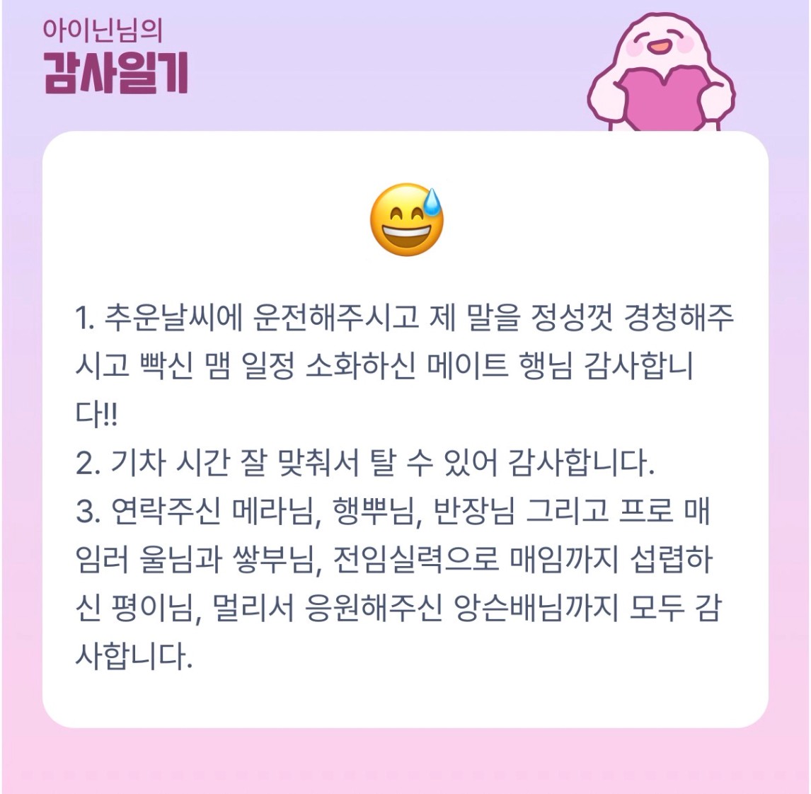 이닌님 추운 날씨에 매임 넘 수고하셨습니다!!