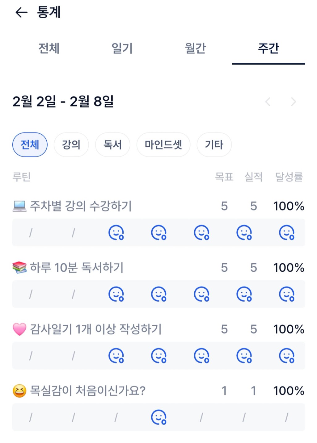 2️⃣ 이번 주 목실감을 작성하면서 느낀점과 더불어 한 주 스스로 어떻게 지냈는지 간단한 회고를 적어보아요 :)