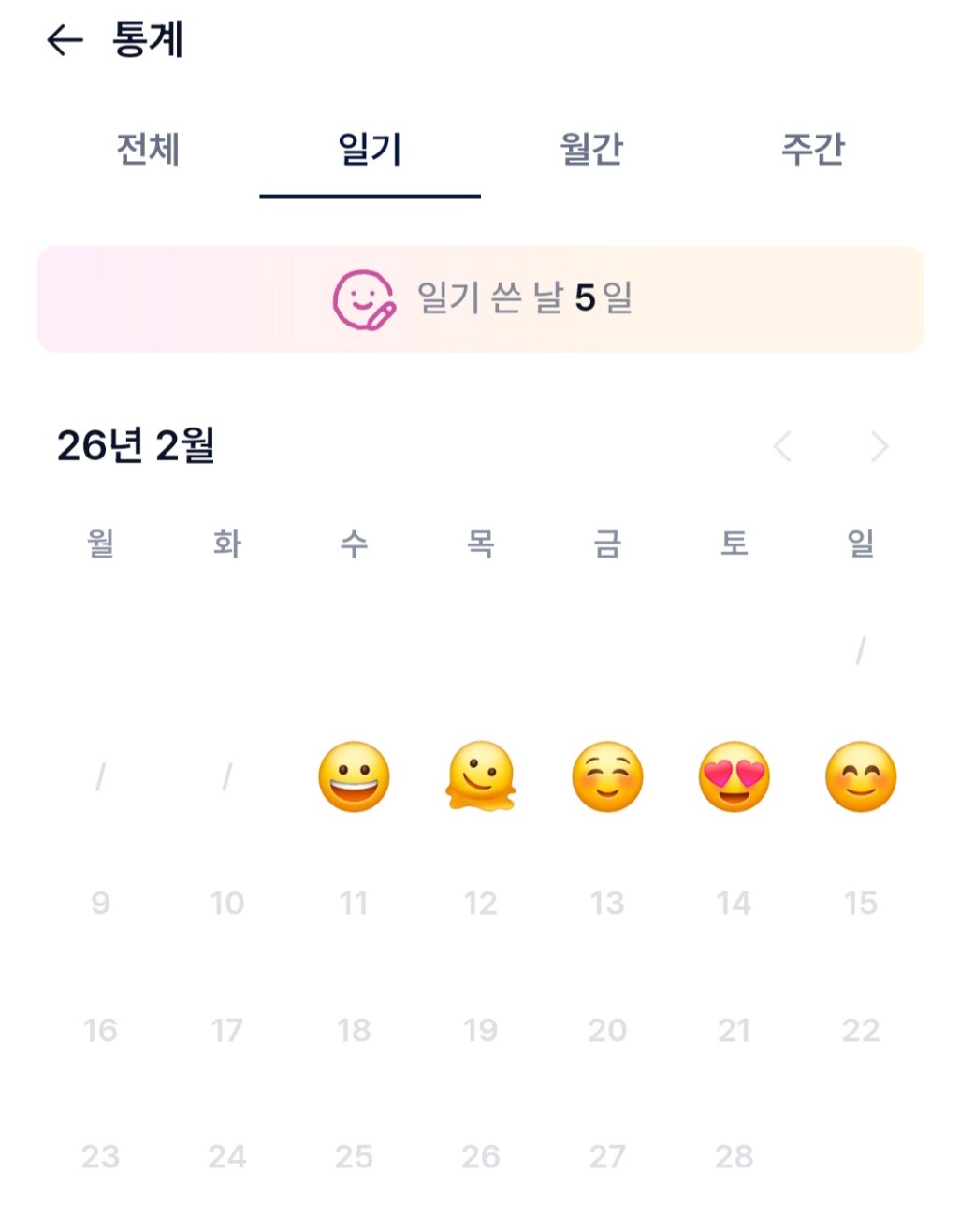 그날의 기분과 느낀점 등을 이모티콘으로 표시하고