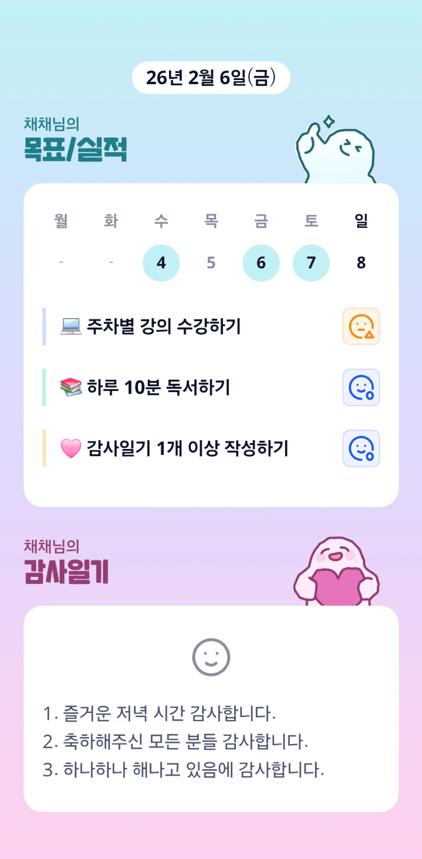 하나하나씩 해내가시고 있는 채채님 응원합니다-! 오늘 완강도 힘내보아요-!💪