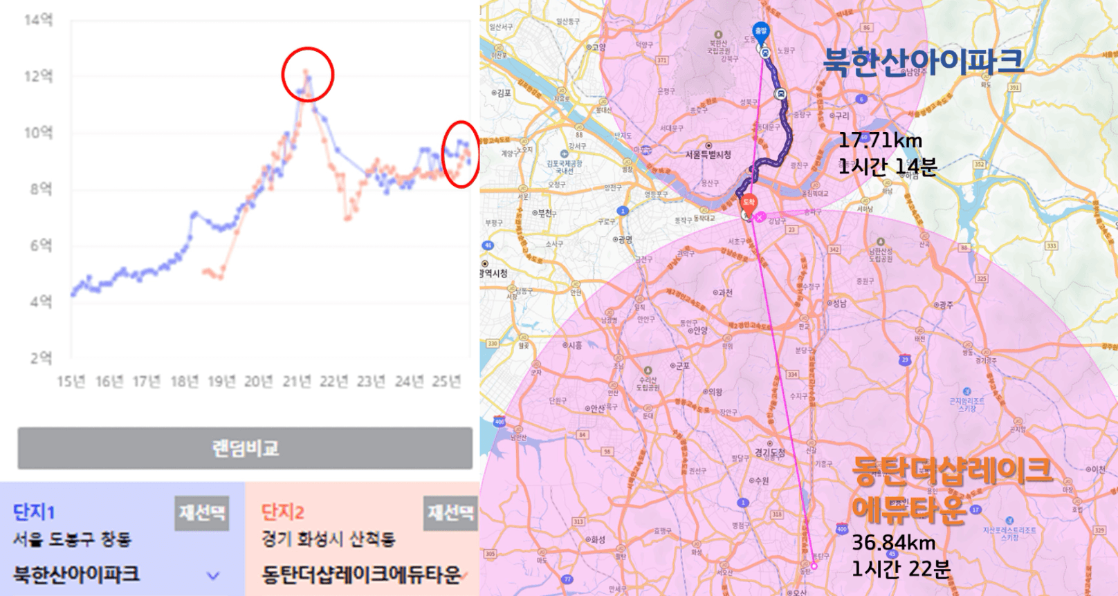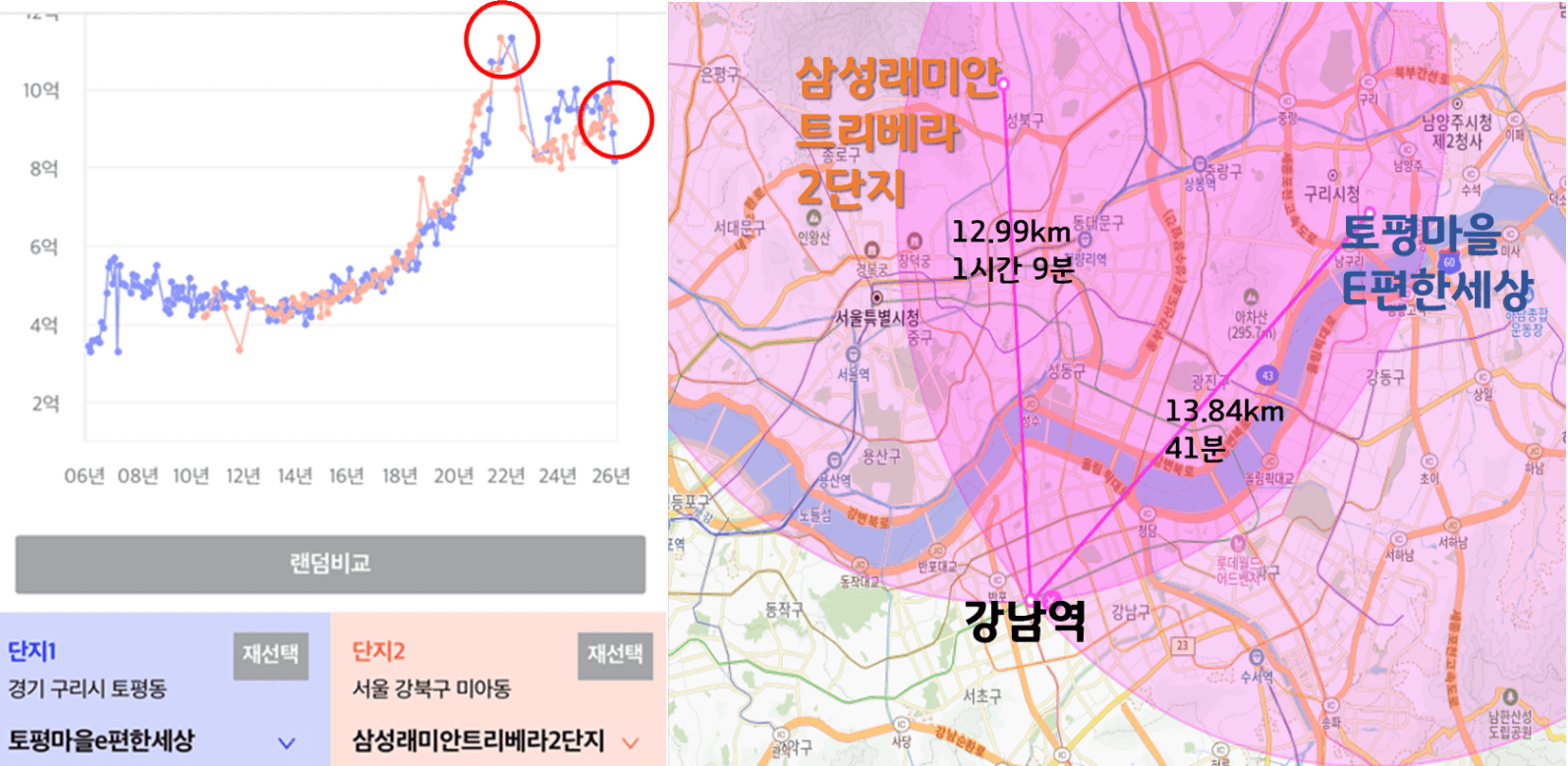 단지마다 갖고 있는 각 특징별 입지요소와 선호도, 수요층이라는
