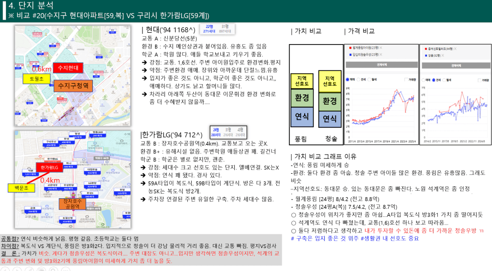 각 생활권 단지 간에 선호도를 파악하기 위해 아래처럼 단지비교를 연습했습니다.