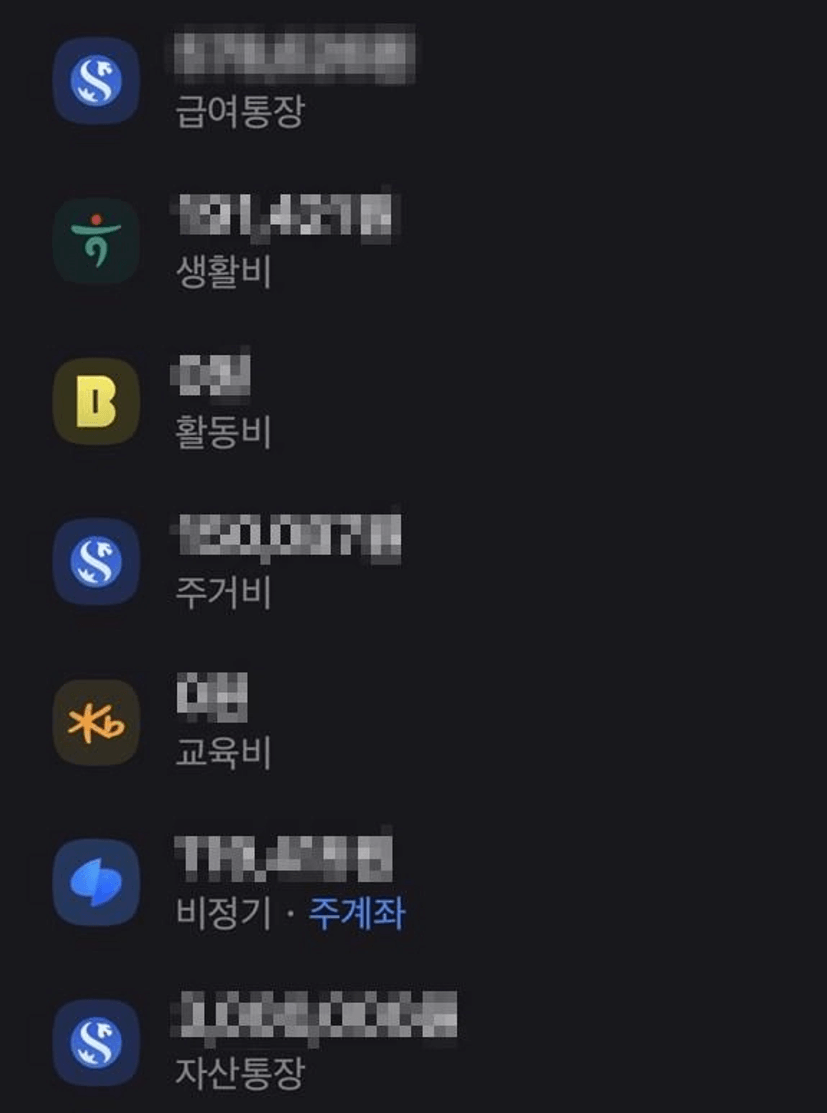 각 용도별로 통장을 나누고 그 안에 정해진 금액만 넣어두면, 자연스럽게 그 한도 내에서만 쓰게 되잖아요.