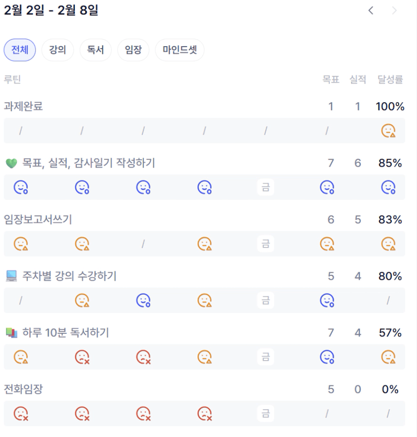 2️⃣ 이번 주 목실감을 작성하면서 느낀점과 더불어 한 주 스스로 어떻게 지냈는지 간단한 회고를 적어보아요 :)