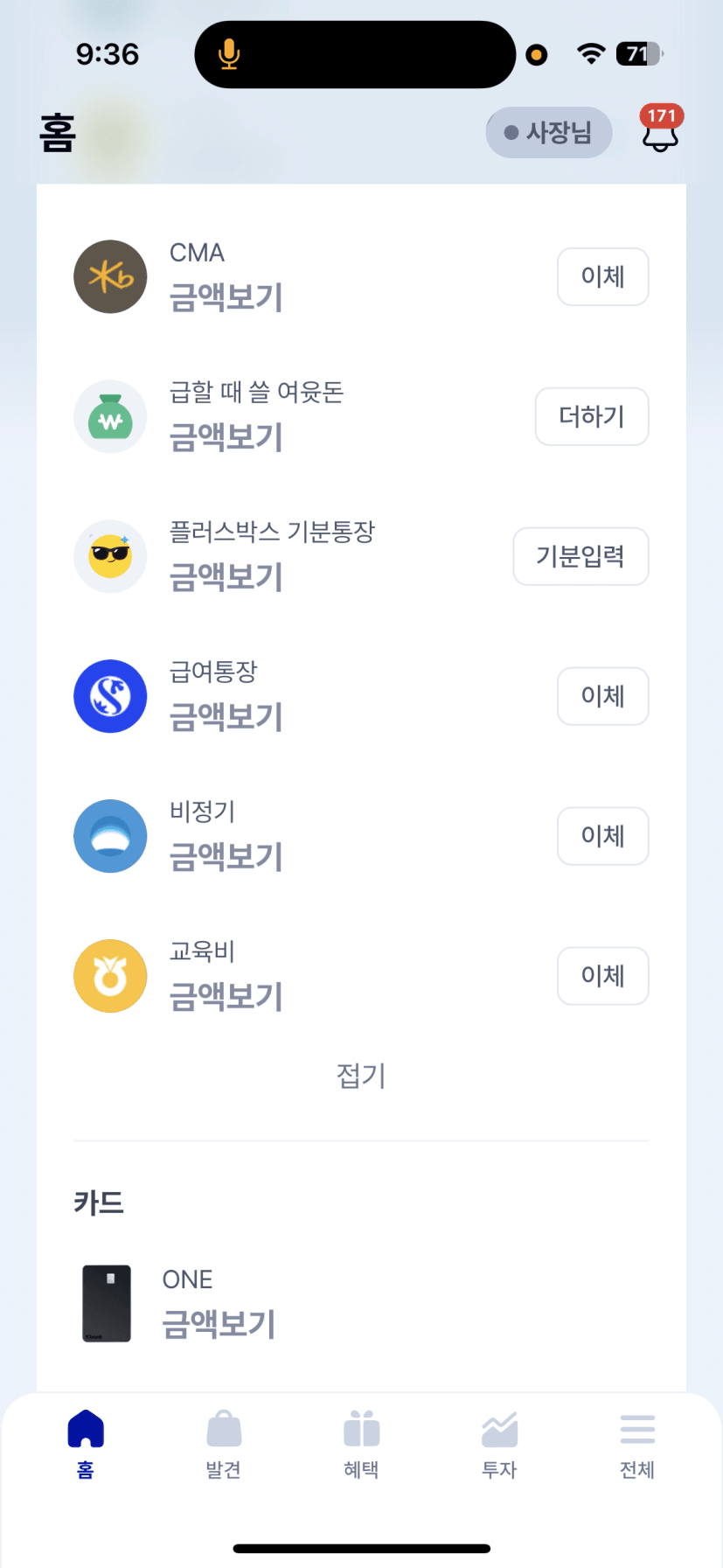 1. 용도별로 나눈 카드 인증샷 (모바일 통장쪼개기 인증샷도 좋아요!)