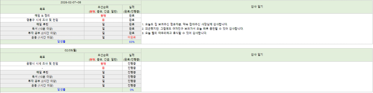 🌻2/9 목표, 2/7~8 실적 & 감사일기