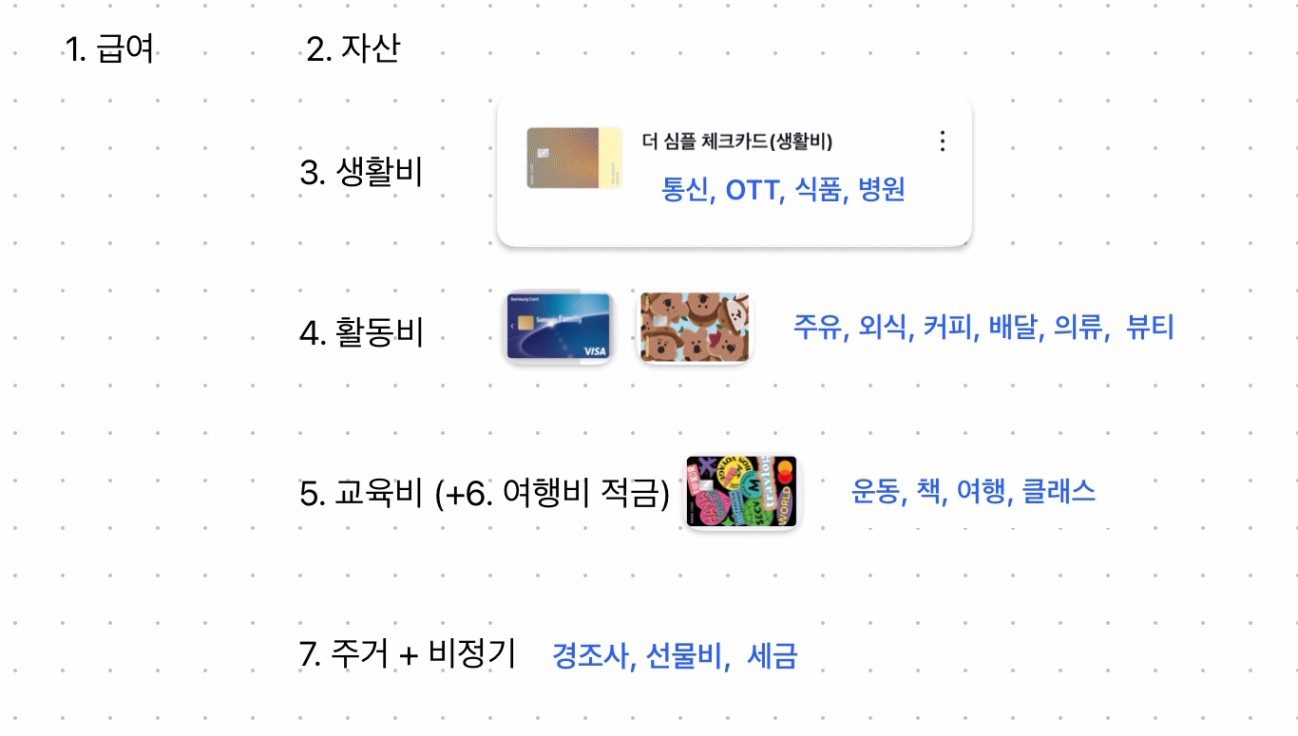 1. 용도별로 나눈 카드 인증샷