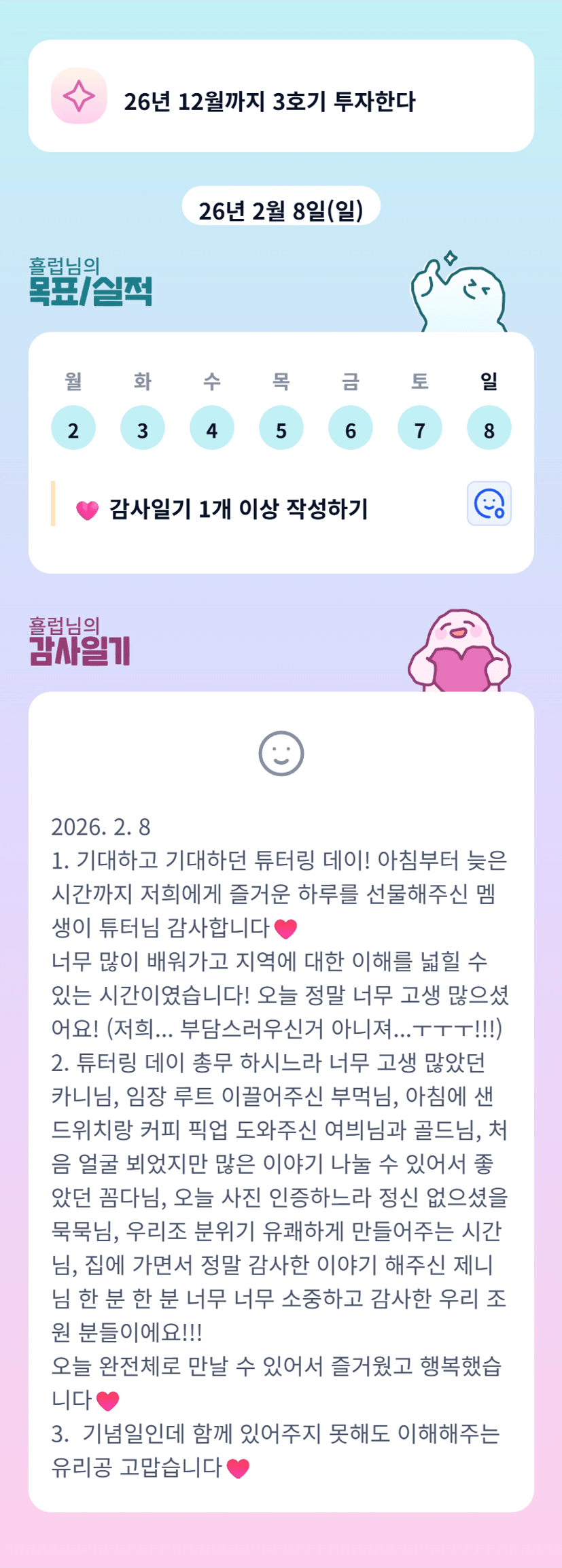 헛 기념일이셨군여 ㅠㅠ 근데도 튜터링데이 준비하고 챙겨주시느라 넘 감사해요 울 조장님 진짜 최고다..★