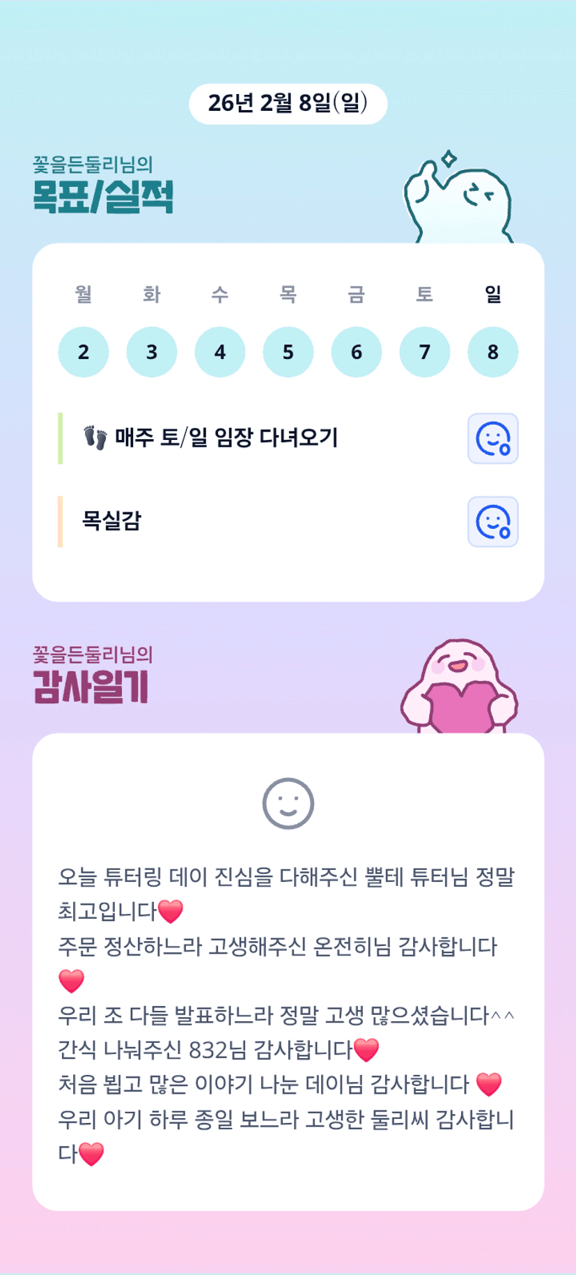 따수운 조장님 목실감💜 이번주도 화이팅이에요!!!