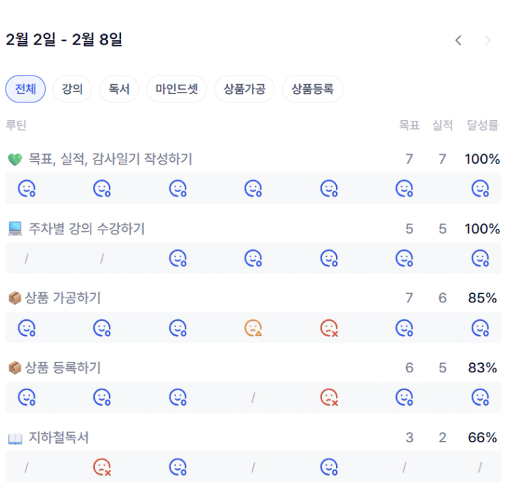 2️⃣ 이번 주 목실감을 작성하면서 느낀점과 더불어 한 주 스스로 어떻게 지냈는지 간단한 회고를 적어보아요 :)