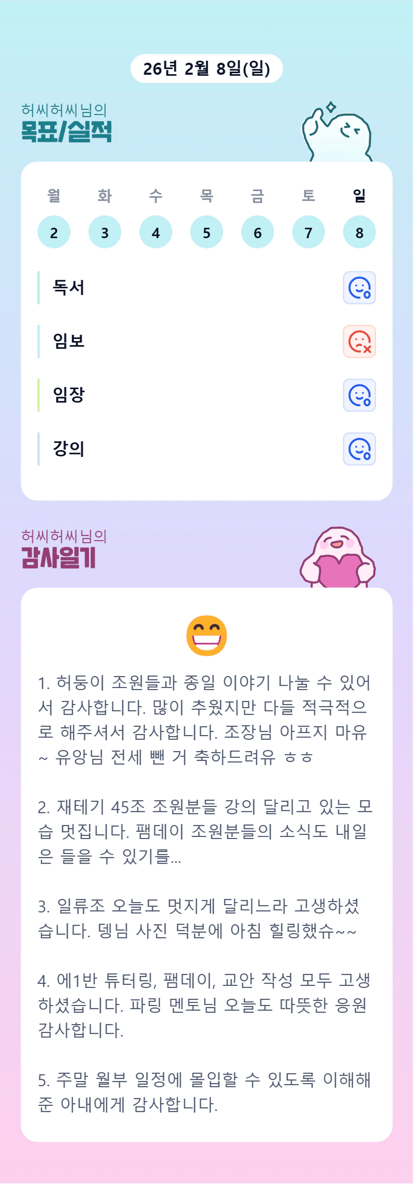 [에이스1반/재테기45기 12조/독서TF 허씨허씨] 2. 7 ~ 8 감사일기