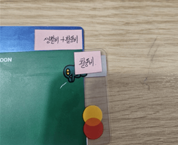 평소 전적으로 아내가 맡아 하고있기 때문에 아내는 생활비와 활동비를 합쳐 하나의 카드로 운용하기로 하였습니다.