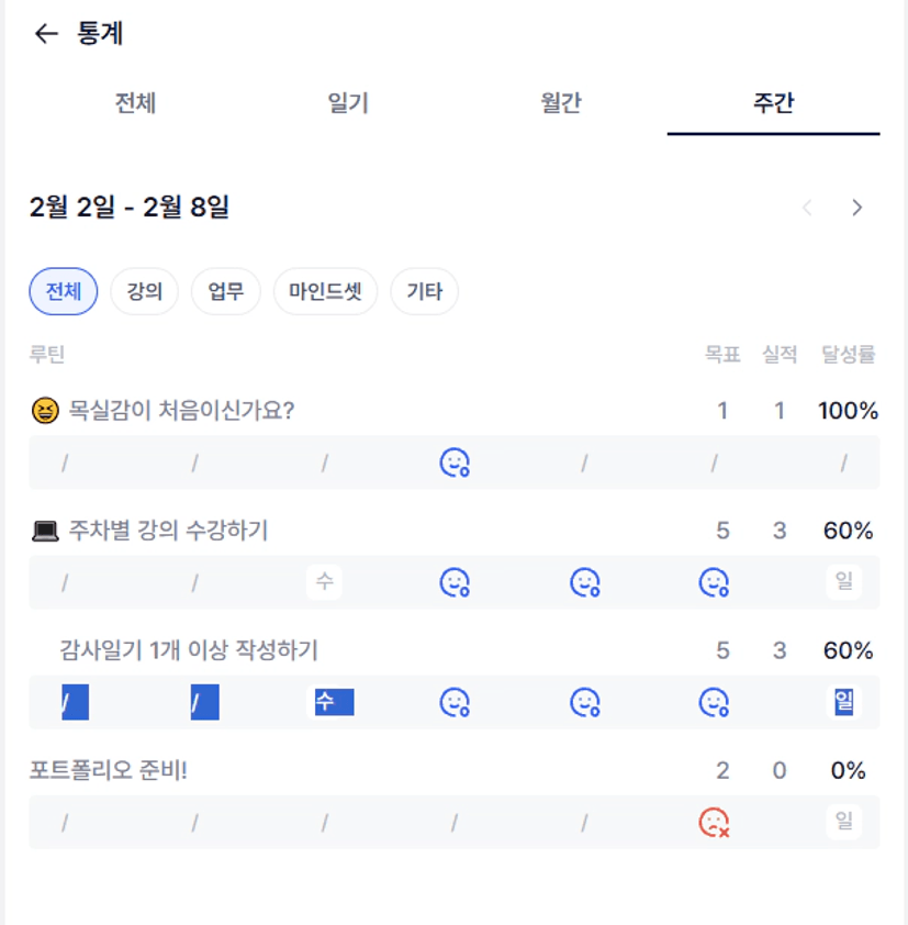 2️⃣ 이번 주 목실감을 작성하면서 느낀점과 더불어 한 주 스스로 어떻게 지냈는지 간단한 회고를 적어보아요 :)