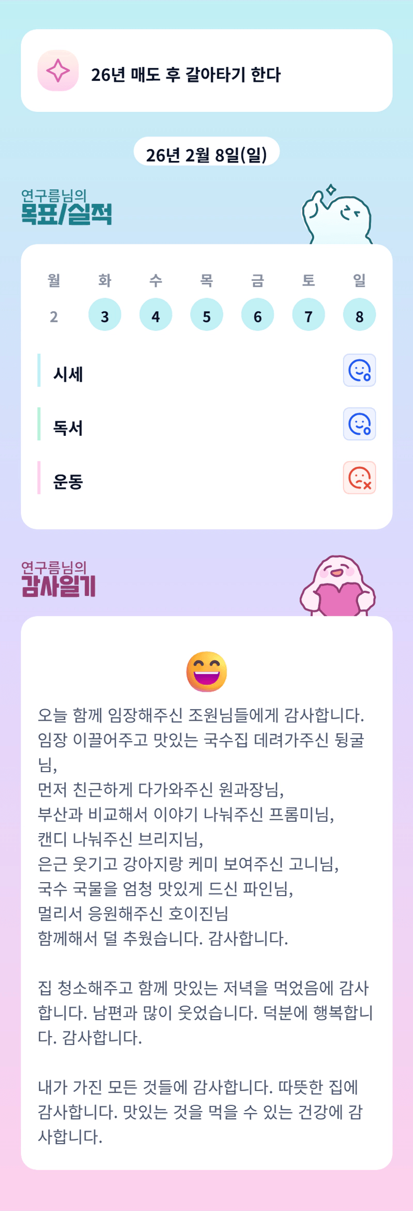 목표 하나씩 해나가시는 구름조장님 화이팅!!!