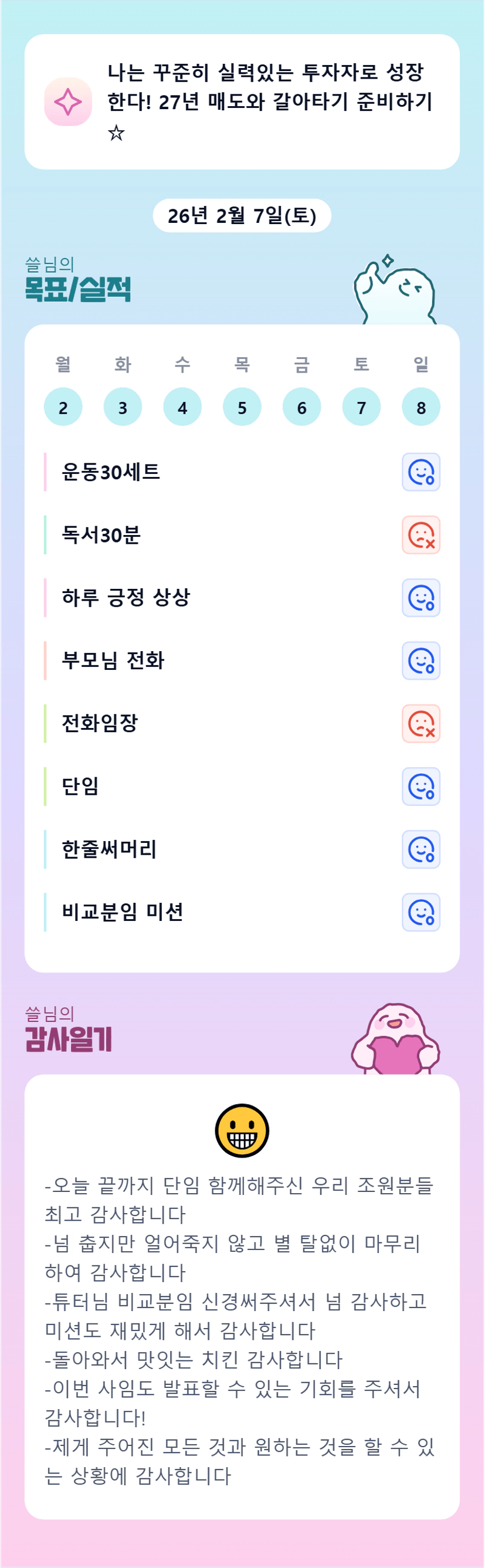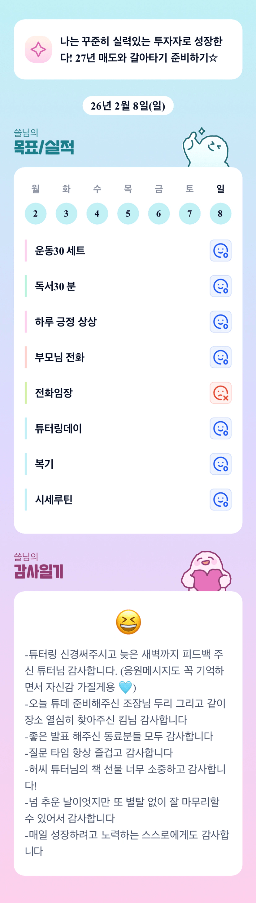 쓸님 임보 찢었따!! 좋은 인사이트 공유주셔서 감사합니다. 임장과 튜데까지 빡쎈일정 고생하셨고 시세도 화이팅입니다! 항상 좋은 질문주셔서 감사합니다~~
