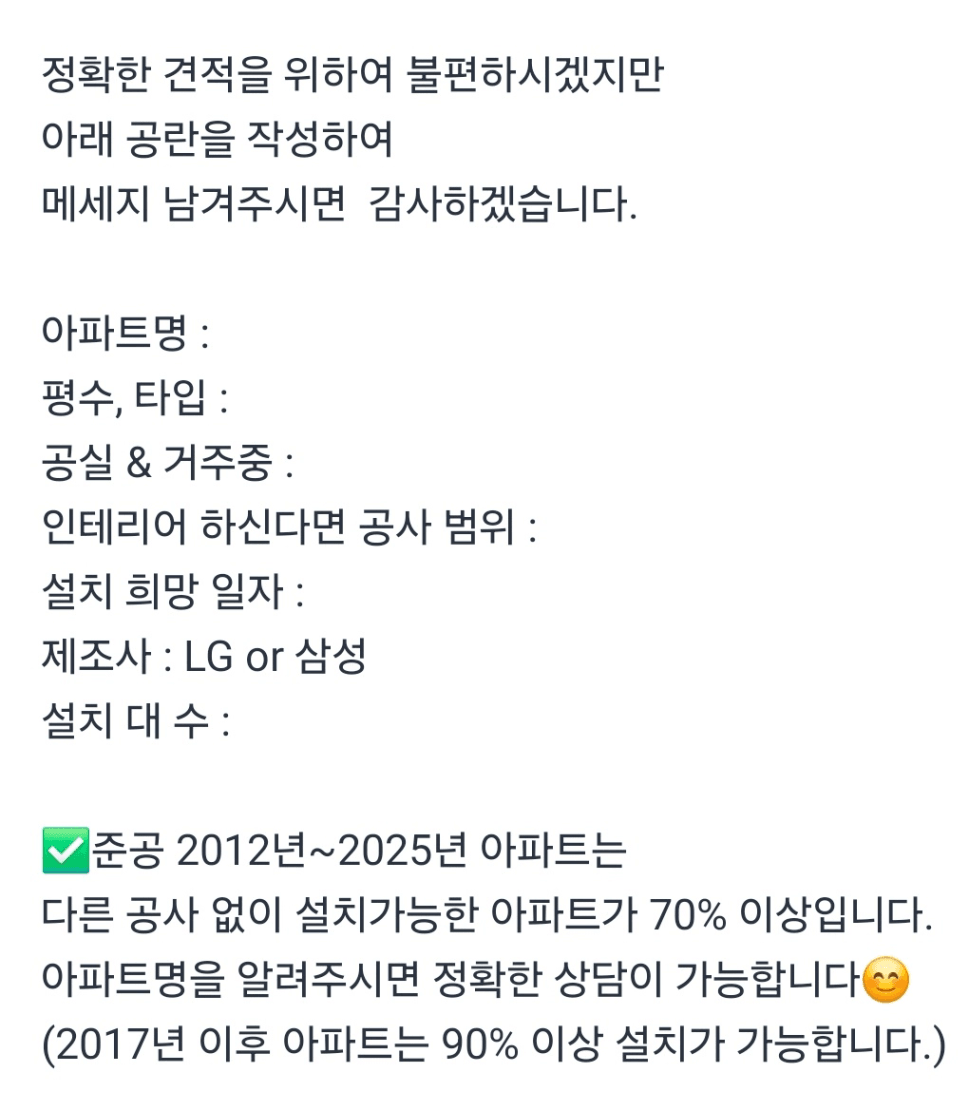 시스템 에어컨 견적 문의 과정에서
