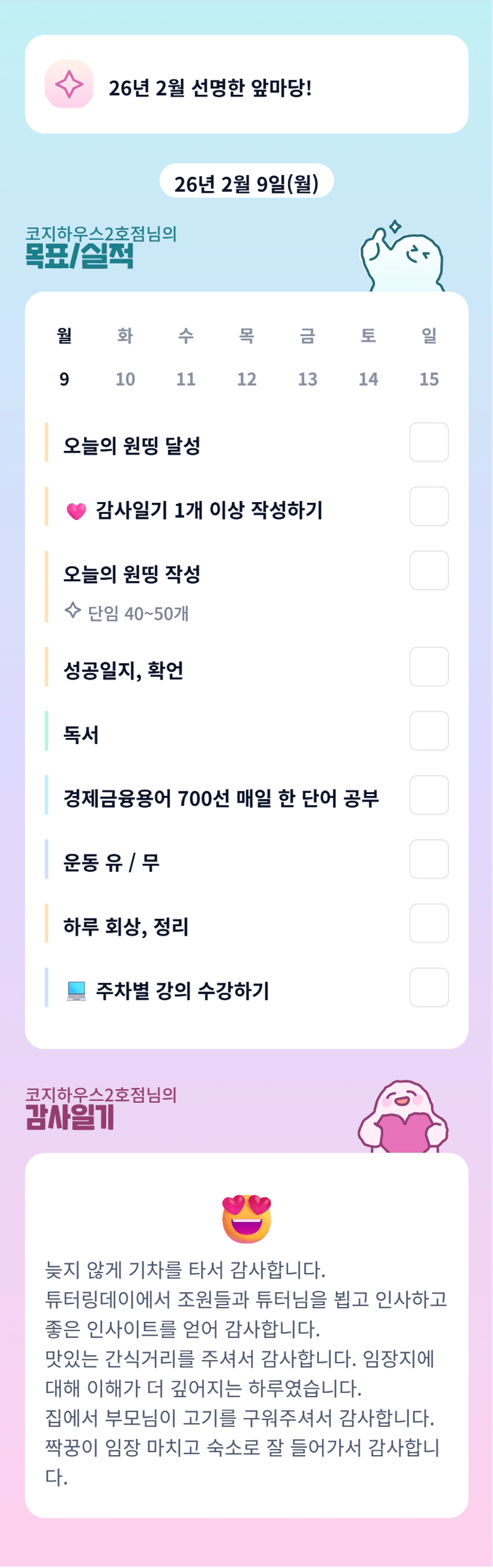 2/9, 2/8 감사일기가 내용이 똑같은 거 같은데..?!